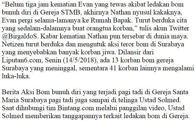 Khusus Untuk Teroris Bom Surabaya: Evan dan Nathan Tidak Tahu Apa-apa, Mereka Hanya Ingin Beribadah Minggu